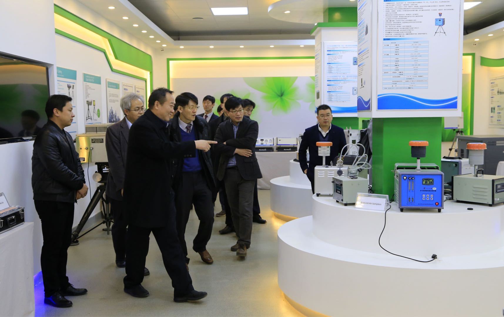 此次來(lái)訪交流,韓國(guó)環(huán)境部Green Patrol監(jiān)測(cè)技術(shù)開(kāi)發(fā)事業(yè)團(tuán)一行首先在公司總經(jīng)理李虹杰的陪同下,參觀了公司展廳,李總詳細(xì)介紹了TH-300B大氣環(huán)境揮發(fā)性有機(jī)物在線監(jiān)測(cè)系統(tǒng),該項(xiàng)產(chǎn)品目前已獲得日本、美國(guó)、歐洲及國(guó)內(nèi)專利,監(jiān)測(cè)種類在原來(lái)102種的基礎(chǔ)上擴(kuò)展至134種,在不使用液氮的情況溫度可短時(shí)間內(nèi)降至-150度以下,空管捕集能達(dá)到全捕集全分析的效果,可連續(xù)24小時(shí)不間斷無(wú)盲點(diǎn)采樣,F(xiàn)ID/MS雙通道檢測(cè)精度可達(dá)到ppt級(jí)標(biāo)準(zhǔn);以及TH-980H大氣細(xì)顆粒水溶性離子連續(xù)測(cè)定儀、環(huán)境空氣質(zhì)量監(jiān)測(cè)系統(tǒng)等公司拳頭產(chǎn)品。