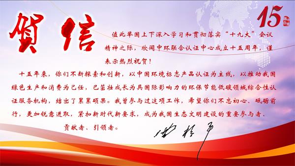 本次論壇恰逢承辦方中環(huán)聯(lián)合認(rèn)證中心成立15周年,原全國(guó)人大環(huán)境與資源保護(hù)委員會(huì)主任委員、中華環(huán)境保護(hù)基金會(huì)名譽(yù)理事長(zhǎng)、中環(huán)聯(lián)合認(rèn)證中心第一任管委會(huì)主任、被譽(yù)為“中國(guó)環(huán)境保護(hù)之父”的曲格平先生為本次論壇發(fā)來賀信:勉勵(lì)大家不忘初心,砥礪前行,更加銳意進(jìn)取,緊扣新時(shí)代新要求,成為我國(guó)生態(tài)文明建設(shè)的參與者、貢獻(xiàn)者、引領(lǐng)者。