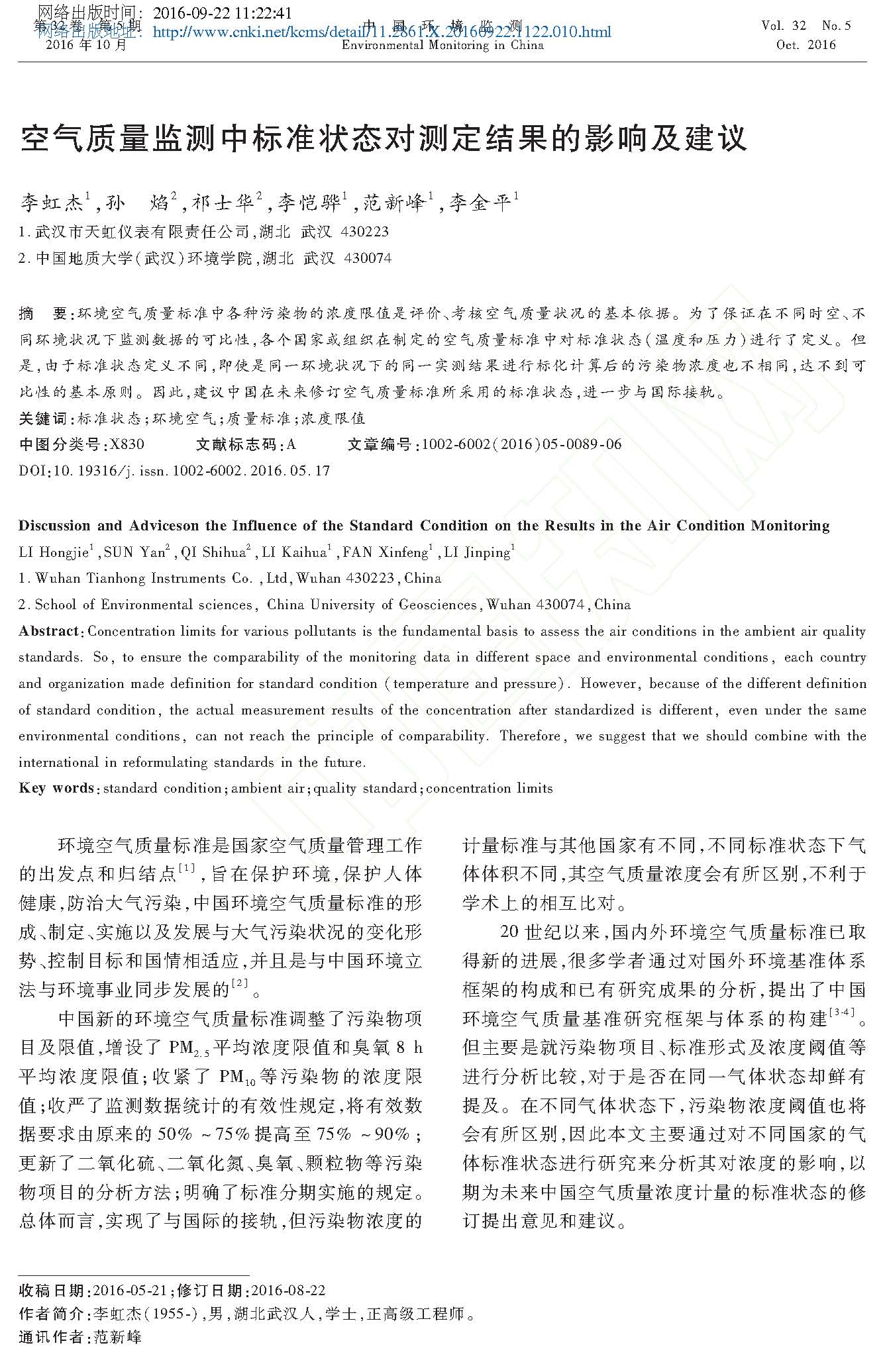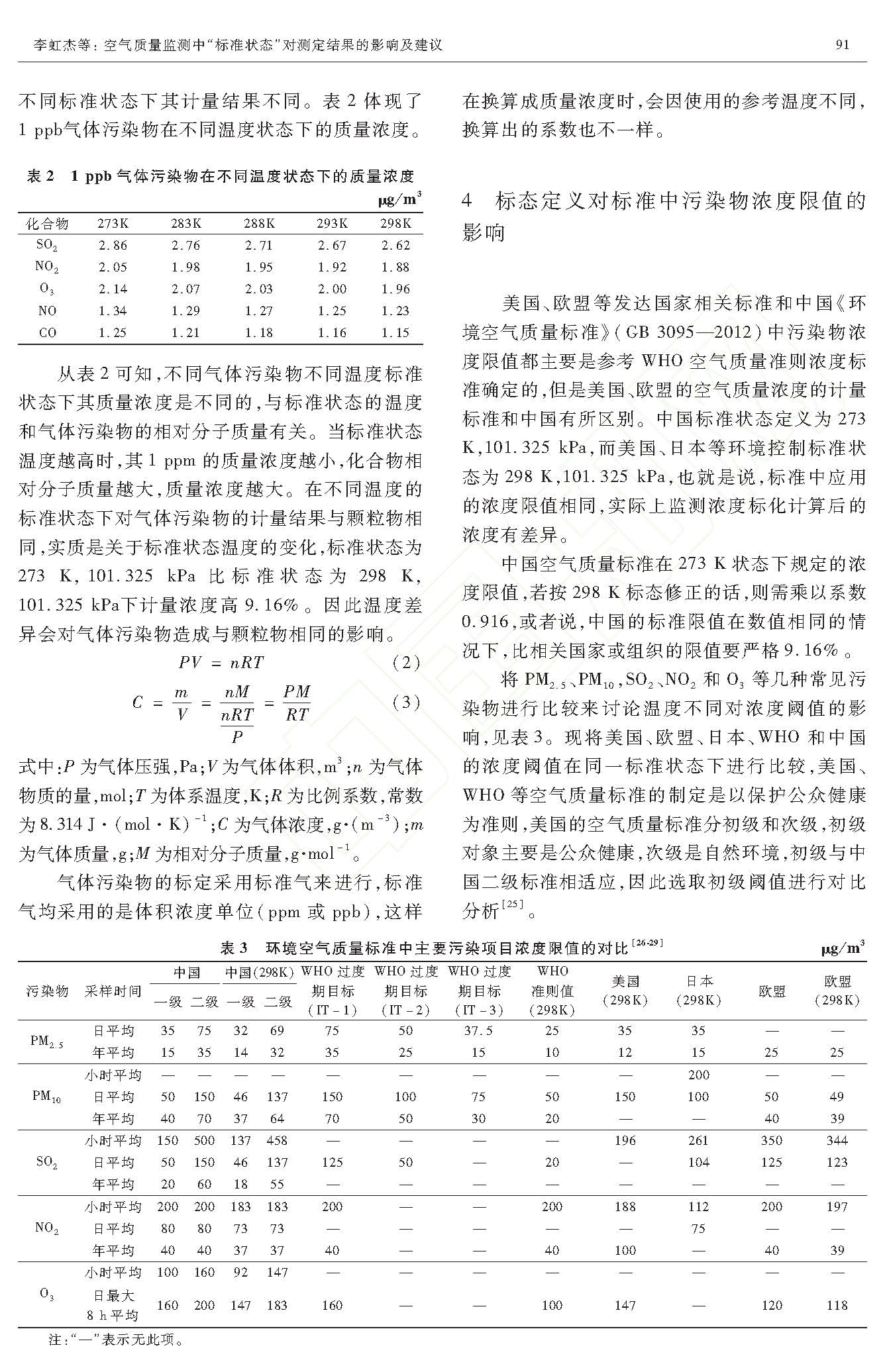 空氣質(zhì)量監(jiān)測中標準狀態(tài)對測定結(jié)果的影響及建議