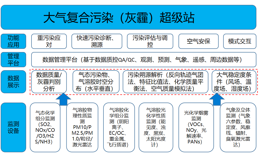 6) 氣象及立體監(jiān)測(cè):氣象六參數(shù)、大氣穩(wěn)定度、風(fēng)廓線雷達(dá)、微波輻射儀、臭氧激光雷達(dá);