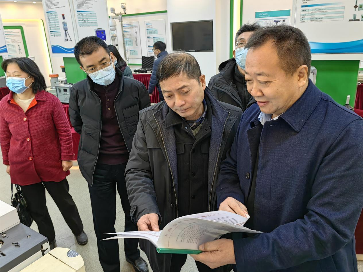 會后,湖北省生態(tài)環(huán)境廳黨組成員、副廳長萬麗華、湖北省環(huán)境執(zhí)法監(jiān)督局局長楊龍文、湖北省生態(tài)環(huán)境廳氣候處二級調(diào)研員楊嶸一行參觀了武漢天虹環(huán)保的展廳。公司董事長李虹杰介紹了武漢天虹自成立以來,堅持以創(chuàng)新推動發(fā)展,取得了百余項發(fā)明專利,在技術(shù)、產(chǎn)品和應(yīng)用上也不斷精益求精,一直不斷推出新儀器。還介紹了公司在碳達峰碳中和方面做出的努力,我公司自主研發(fā)的碳排放監(jiān)測儀器也已基本成型。